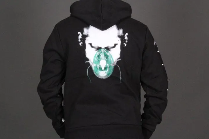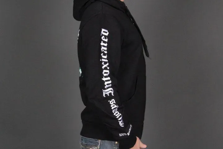 Zippered hoodie with Narcose print on back, chest and sleeve. Men, black, small.