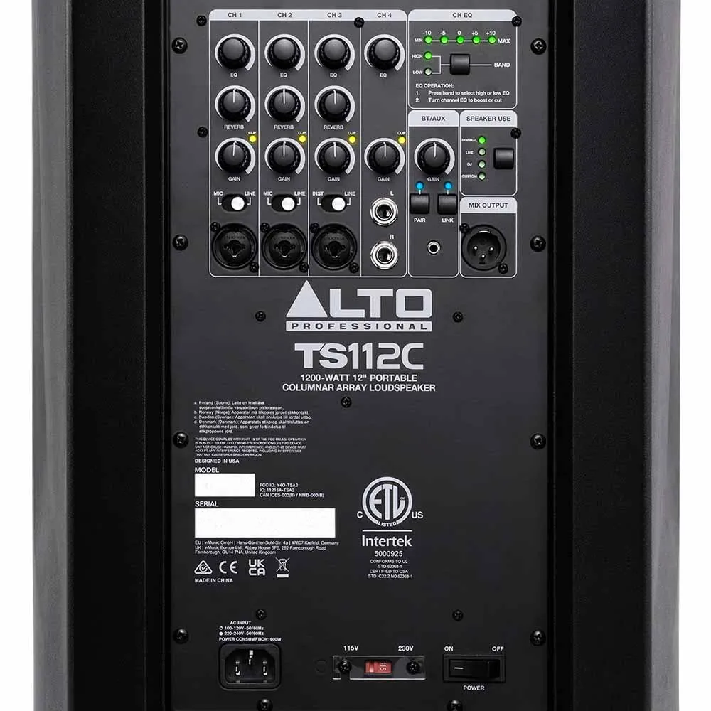The TS112C functions as a complete PA system with a built-in 5-channel mixer that has inputs for microphones, instruments and other external audio sources. You can easily adjust the sound and your personal mix directly from your mobile phone via the Alto Pro app.