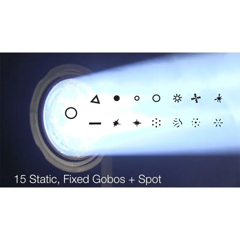 - 15 static, fixed gobos + spot
