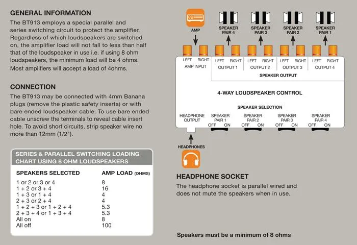 Play any combination of up to 4 speaker pairs at the same time