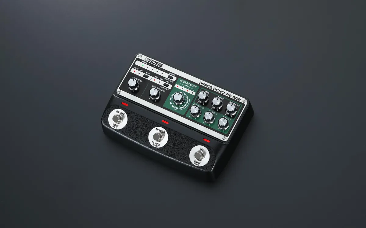 Realized through the latest technologies and exhaustive analysis of several vintage RE-201s—including a pristine original unit from the BOSS and Roland factory archive—the RE-202 brings the complete Space Echo experience to life in a versatile modern pedal.