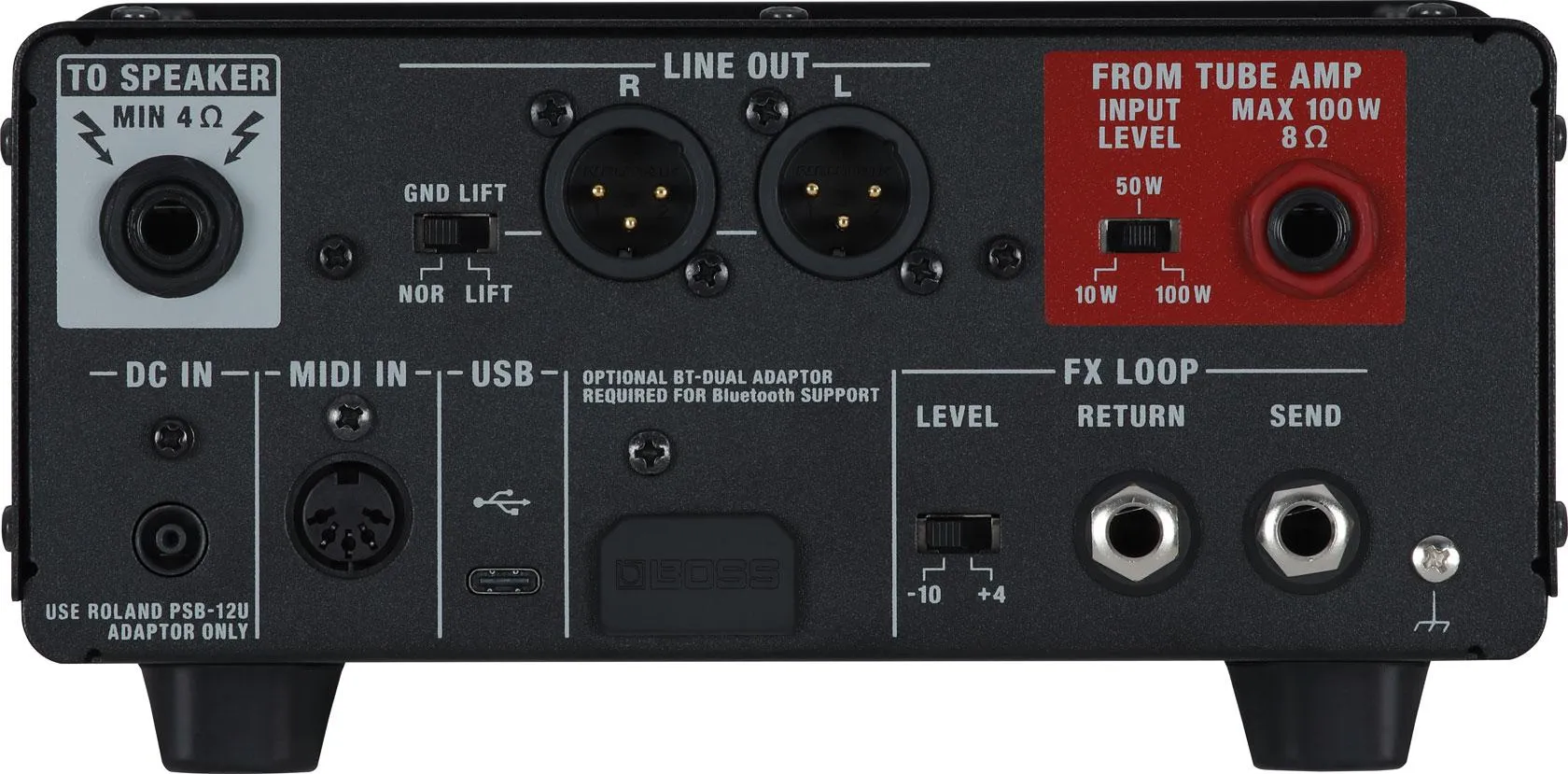 Speaker output for connecting an external cabinet (supports 4 ohms and higher)