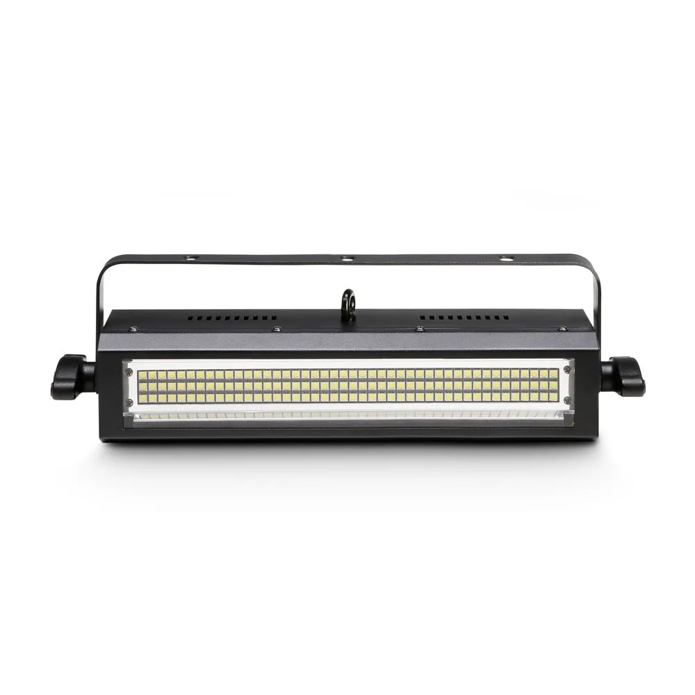 The Thunder Wash 100 W is a Strobe, Blinder and Wash Light all in one. It is equipped with 132 white 0.2 Watt SMD LEDs, with an 80° beam angle and features a compact black metal housing with universal mounting bracket.
