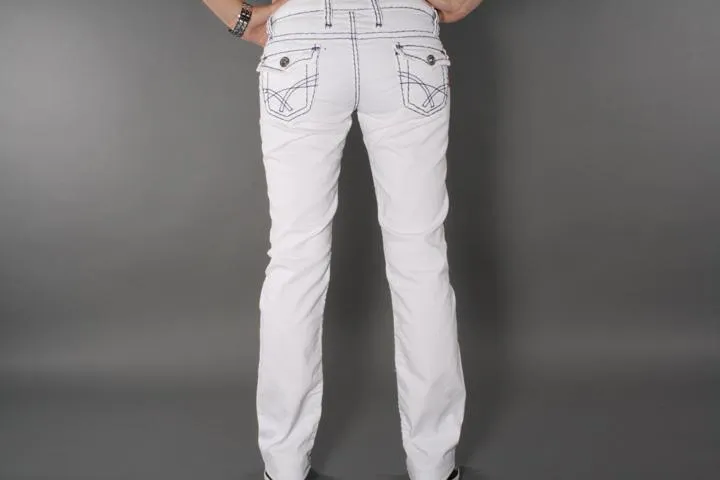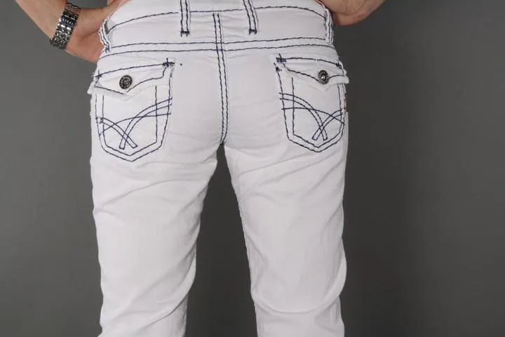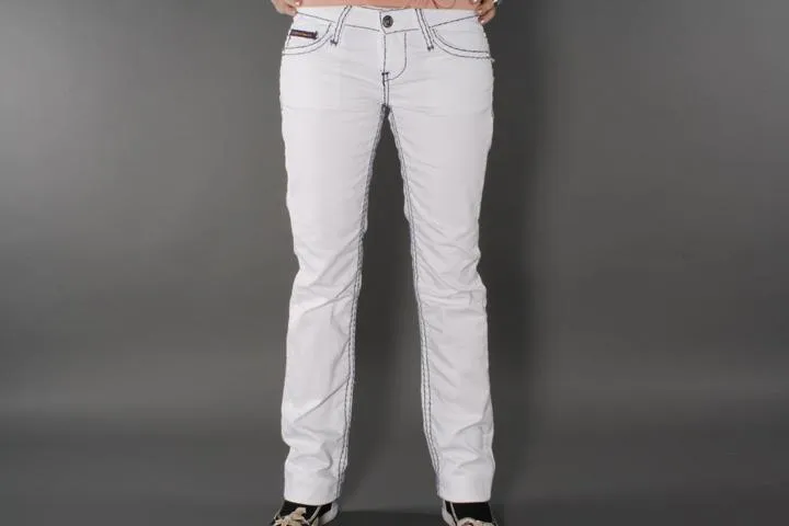 Cool and trendy jeans in white from Cipo & Baxx. Sewn with coarse dark blue thread. 70% cotton, 30% polyester. Ladies, white, W26/L32