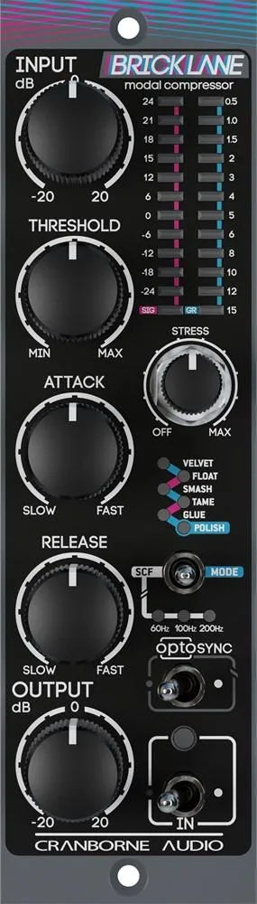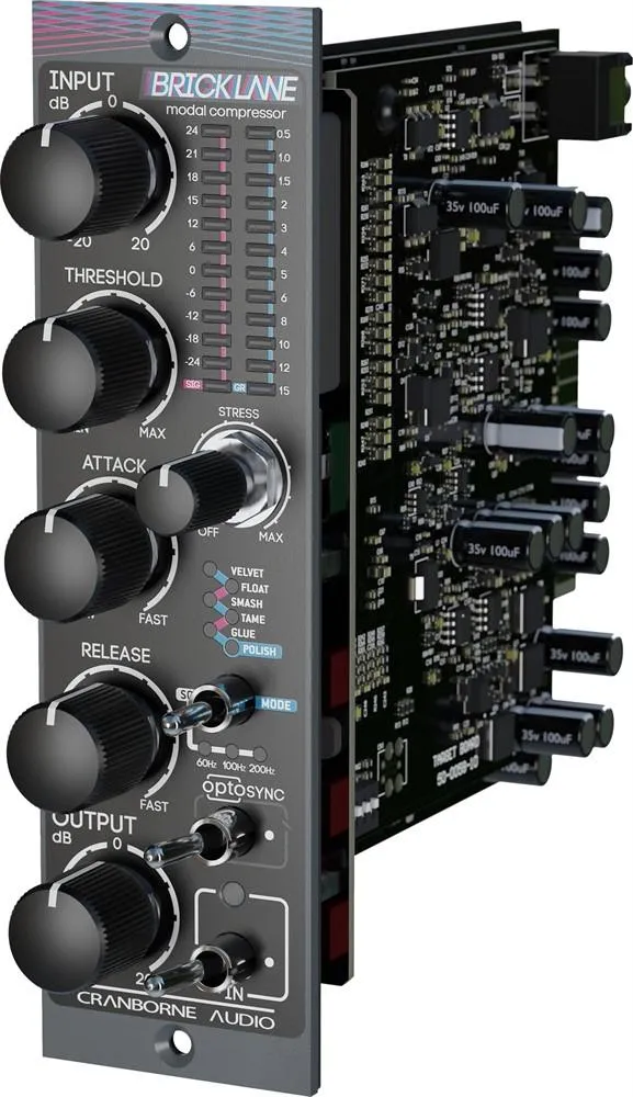 The Brick Lane 500 represents a quantum leap in analog compression — a fully-analogue PWM Compressor that transcends traditional dynamics control methodologies through its revolutionary Modal PWMl Compression architecture. The Brick Lane 500's Modal PWM Compression is like having six legendary hardware compressors at your fingertips, each with its own distinct personality, sonic signature, and dynamic DNA. Brick Lane also features Cranborne Audio’s OPTOSYNC technology, enabling two Brick Lane 500 units to work as a perfect stereo pair for mixes and stereo sources.