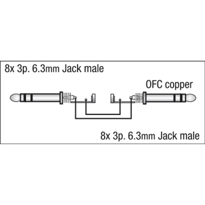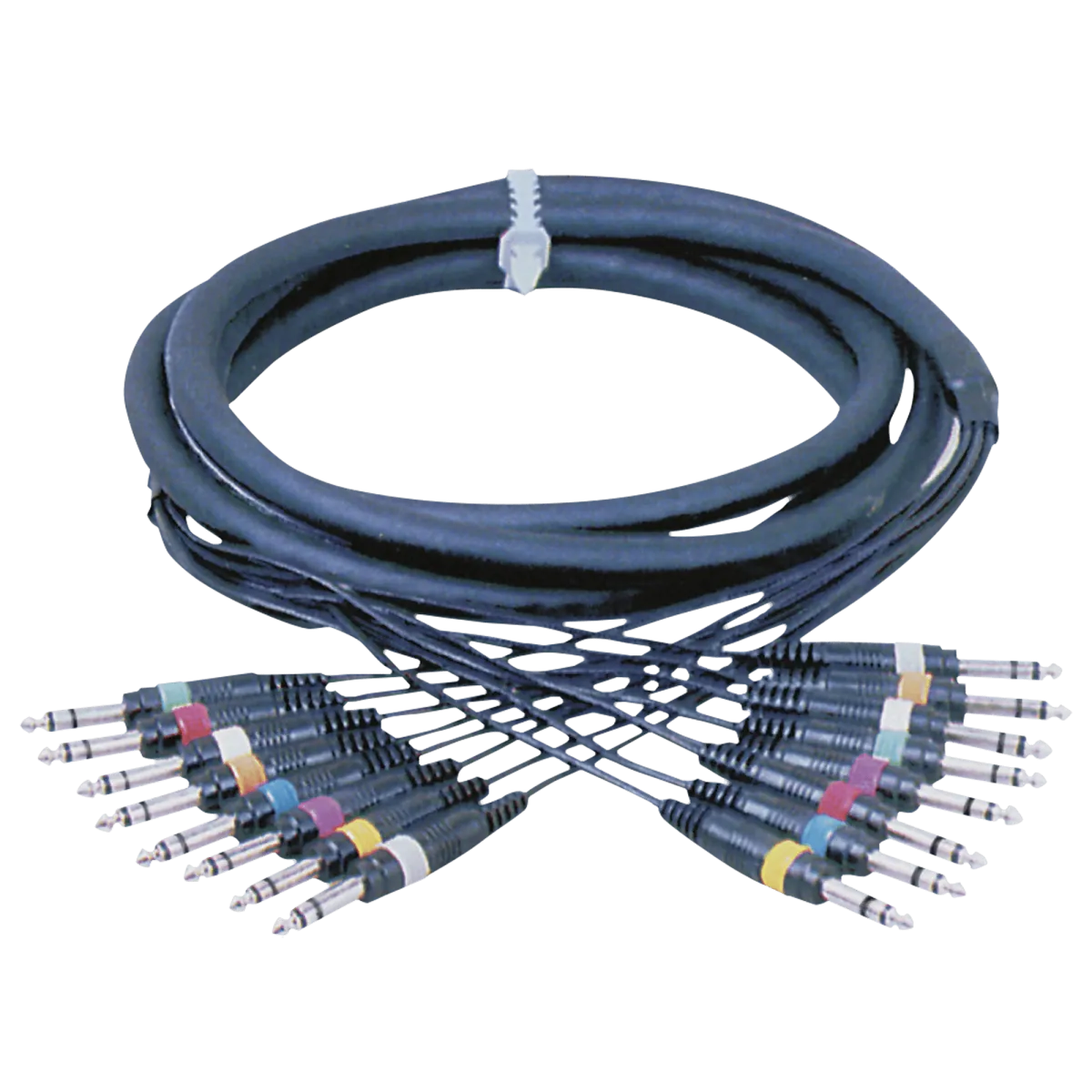 Multi-cable/snake, 8 x 6.3mm male stereo TRS straight to 8 x 6.3mm male stereo TRS, balanced, blue, 6m.