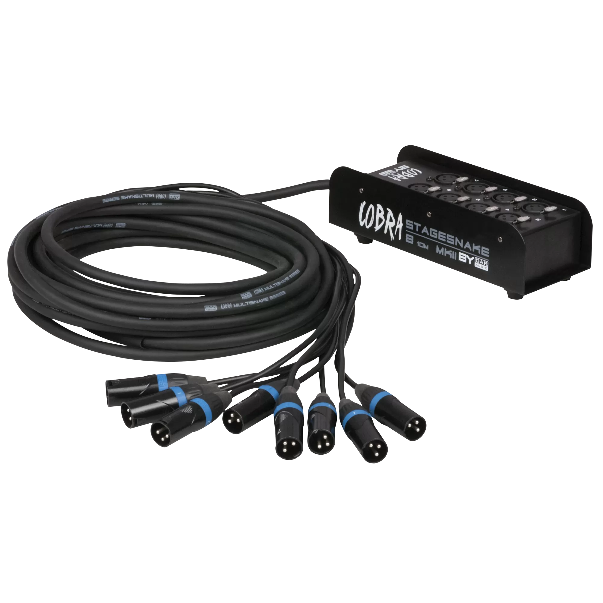 Snake with stagebox, 15 meter, 8 x XLR 3-pin, Chassis on PCB, X-type plugs, Box protection cover.