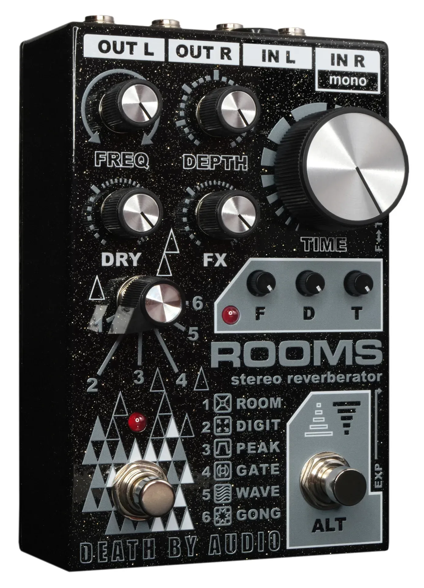 The Death By Audio Rooms Stereo Reverberator is a powerful, studio-grade digital reverb pedal designed for musicians who want to push beyond traditional ambience. From subtle room reflections to massive, chaotic soundscapes, Rooms delivers a wide spectrum of immersive reverb tones.
