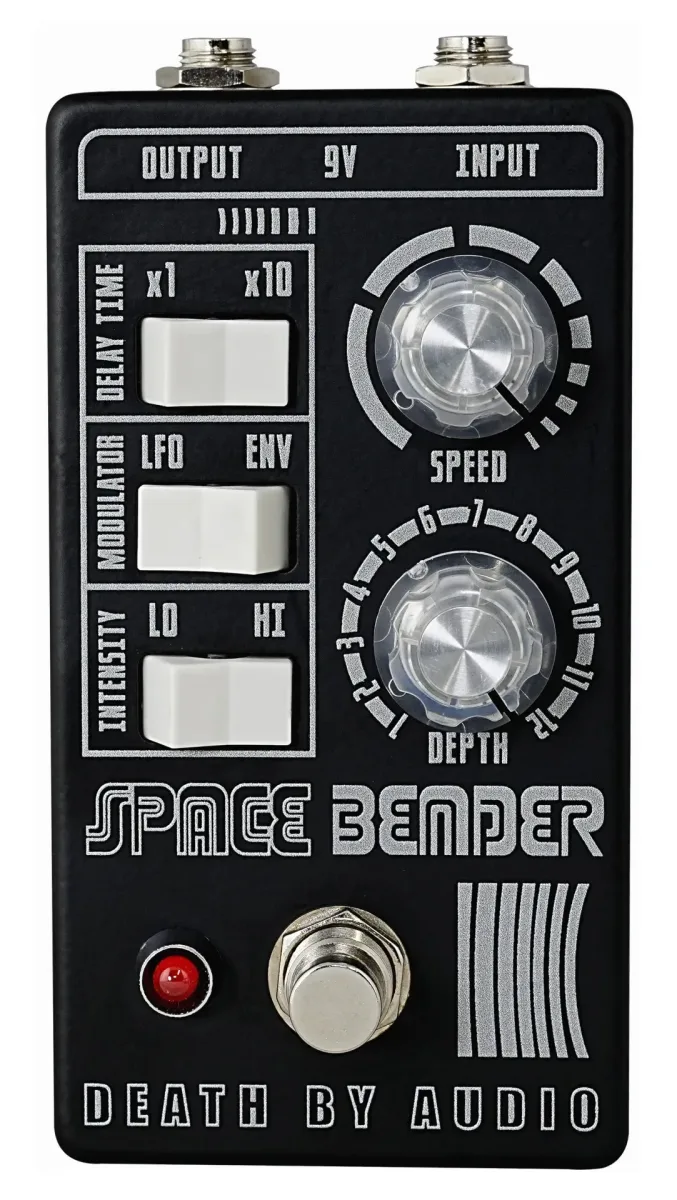 The Death By Audio Space Bender is an advanced chorus and modulation pedal designed to push your sound into new dimensions. Using dynamically modulated delay lines, it creates everything from subtle vintage chorus tones to extreme, otherworldly textures.