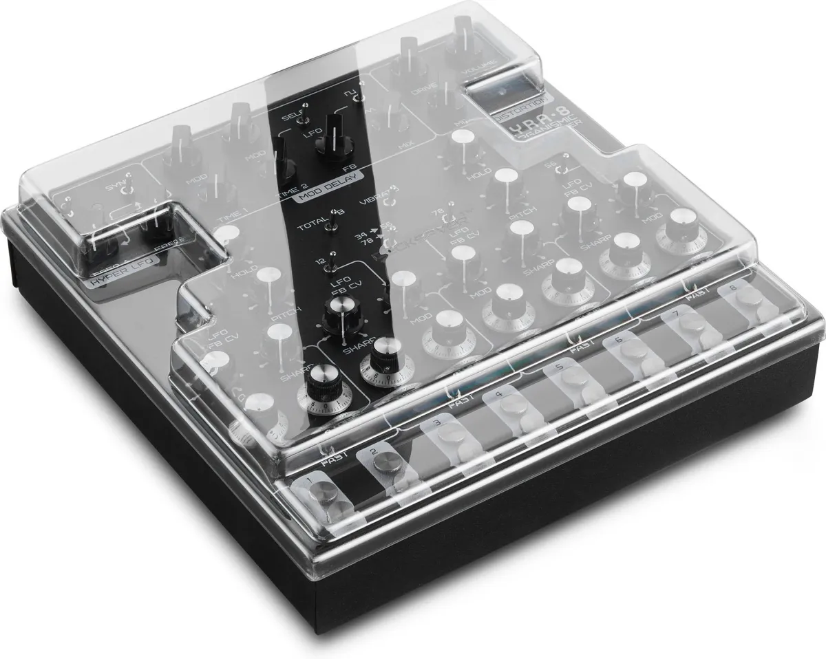 The Decksaver Behringer Lyra-8 Cover features an ultra-durable polycarbonate shell, designed to protect from dust, liquid, particulates and accidental impact damage. It will also protect against superficial damage such as scratches or bumps while on the move. The high quality smoke/clear sheen allows you to see the Lyra-8 through the cover, allowing you to see your gear at all times. The smooth and sheen like finish will slide straight into a bag, ideal for the travelling musician. The cover is custom moulded to shield keys, controls and more from damage, while still allowing you to accommodate cables.