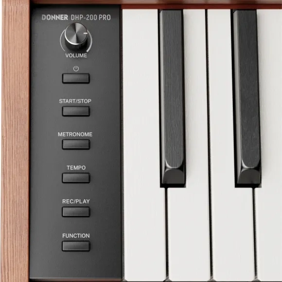 The DHP-200 Pro is an 88-key digital piano with stepped hammer action (GHA), which has a traditional external hammer action with precisely calibrated touch dynamics. This creates an authentic playing feel with a natural dynamic response. The external hammer action provides graduated key weight across the entire keyboard, allowing for expressive and nuanced playing.