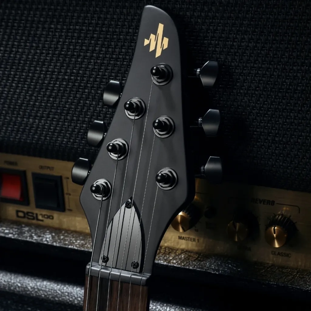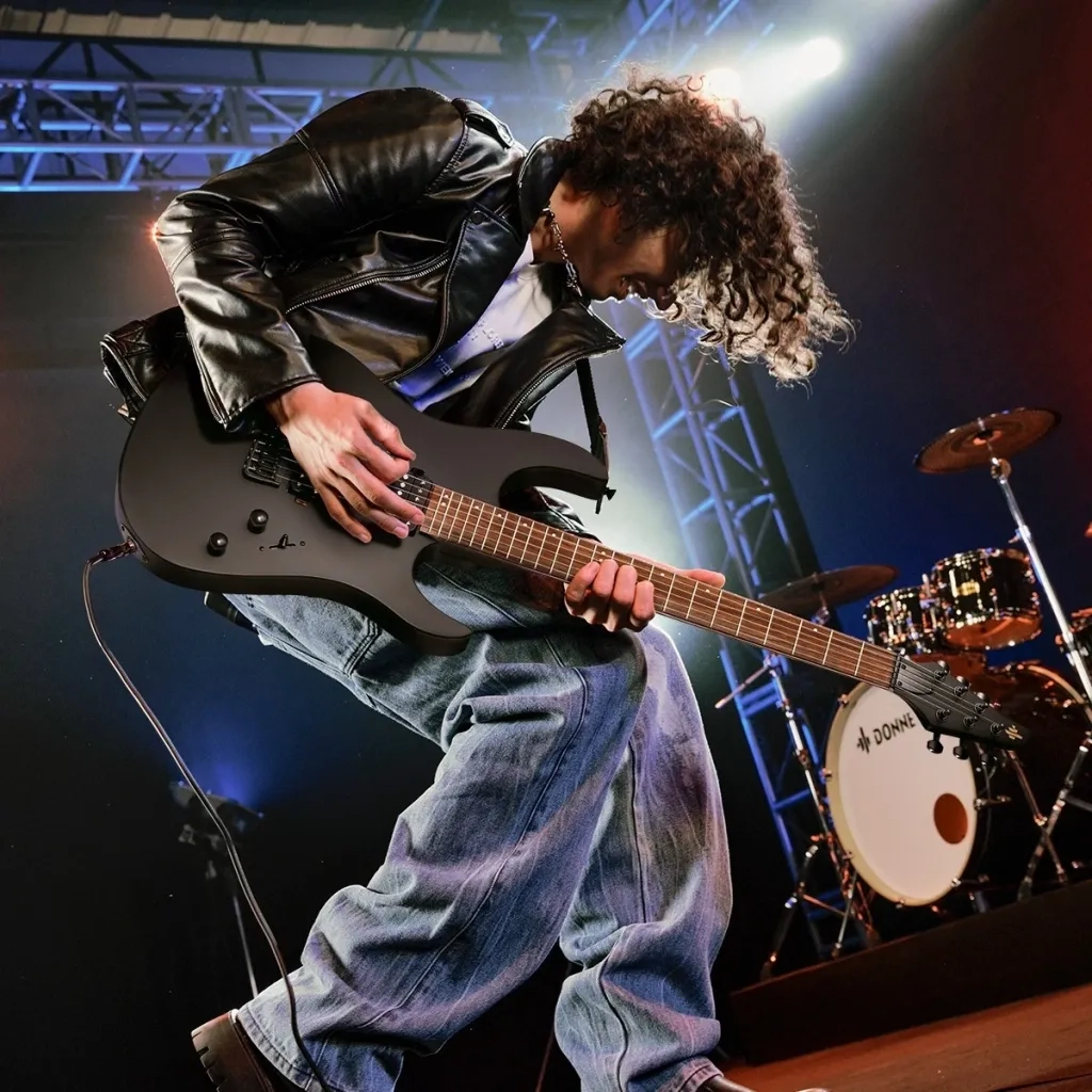 The Donner DMT-100 in matte black is built for guitarists who want an uncompromising expression and an instrument ready for heavy riffs and fast solos. With 24 frets, powerful high-output humbuckers and a design statement that stands out, the DMT-100 is both a visual statement and a versatile tool for everything from metal and hard rock to modern progressive music.