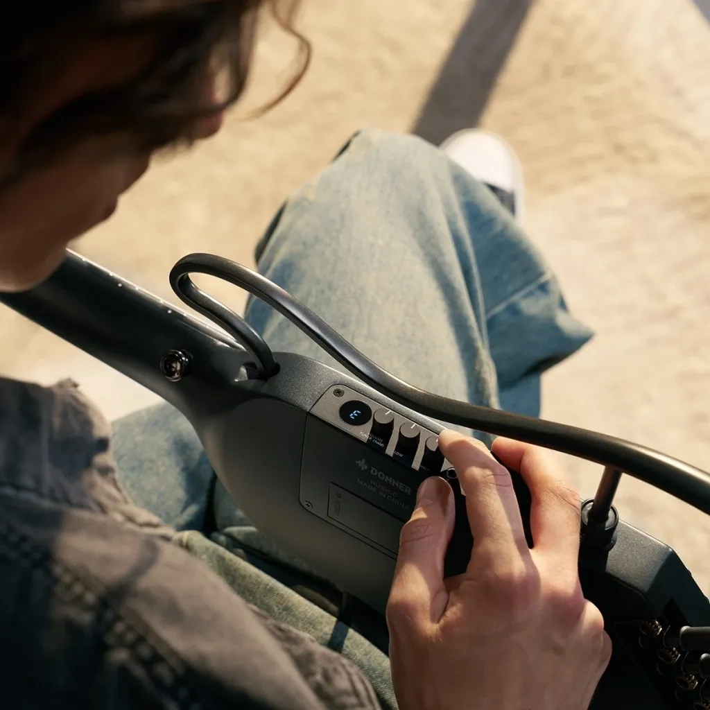 The Donner HUSH-C Silent Sunburst blends traditional Spanish guitar aesthetics with modern technology in a lightweight, portable format. Its elegant sunburst finish offers a warm, classic look, while the quick-release detachable frame makes transport and assembly effortless. Perfect for home practice, teaching, travel, and silent rehearsal.
