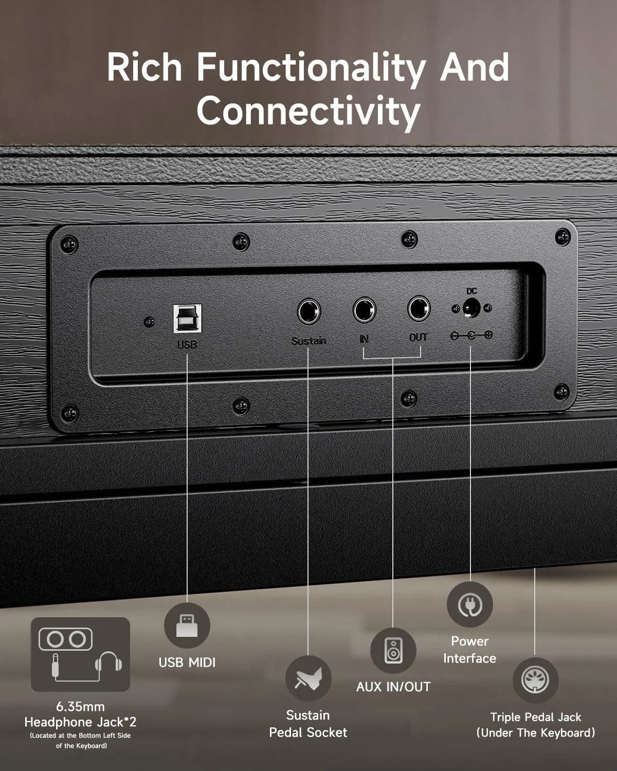 Supports Bluetooth Audio/MIDI and Aux IN; It also doubles as a beautiful Bluetooth speaker.