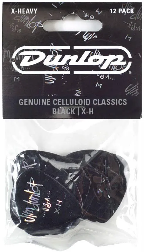 Dunlop 483P03XH Genuine Celluloid Black Picks Extra Heavy 12/PLYPK