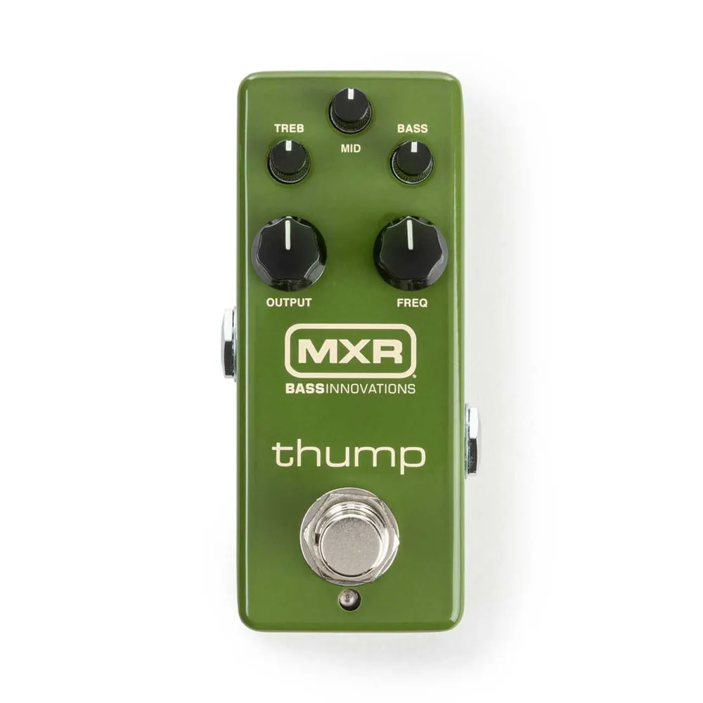 This pedal combines the tone-sweetening magic of the Echoplex® Preamp with a three-band EQ and midrange frequency adjustment so that you can dial in the perfect bass tone. Whether you need to punch up a solo, boost your signal in a live mix, or sculpt more edge into the sound of a passive bass, the Thump Bass Preamp packs incredible versatility into an MXR mini housing.