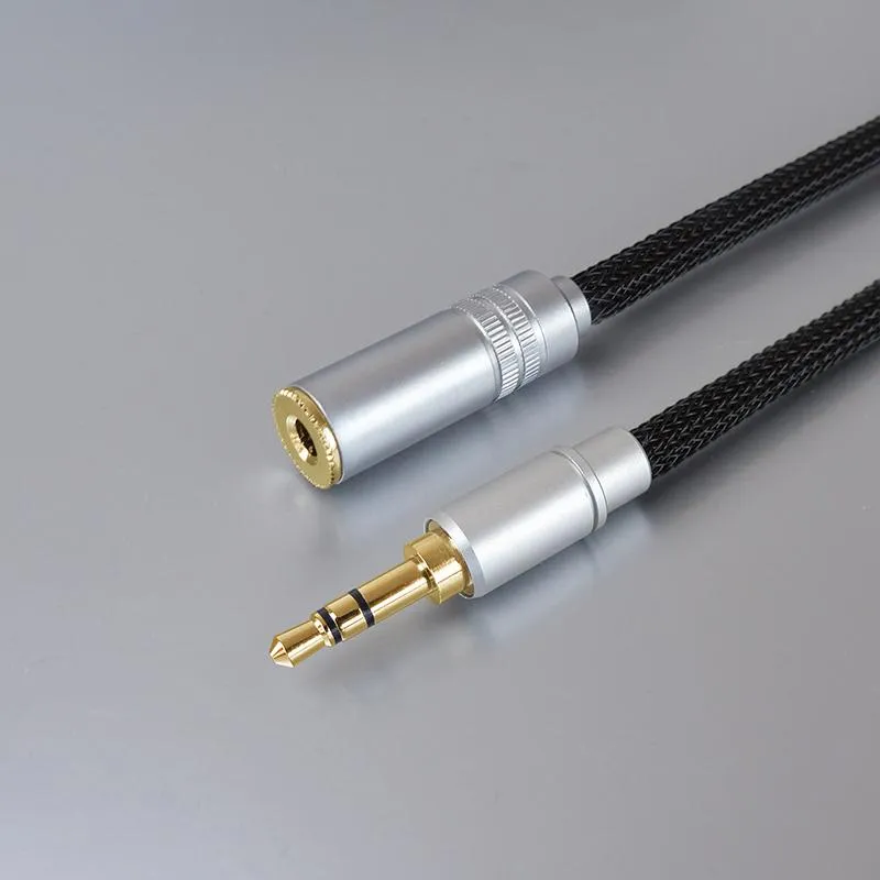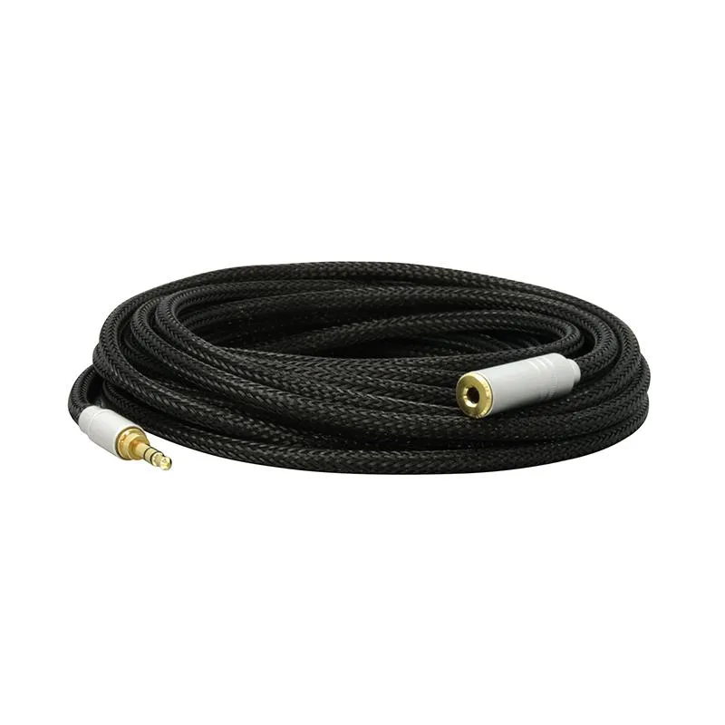 Dynavox 3.5 mm stereo jack extension cable. Inner conductor: OFC (99.99% copper), conductor construction: 11 x 0.12 mm per pole, cable diameter: approximately 5 mm. Conductors with aluminum shield and black nylon outer braid for protection against interference and mechanical stress. High-quality connectors with gold-plated contacts ensure a secure fit and optimal transmission.