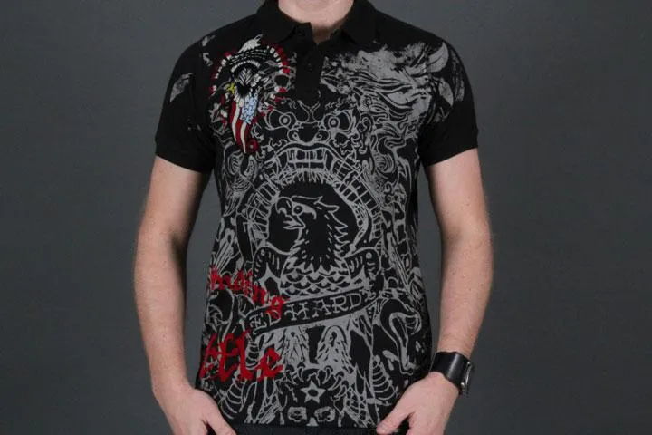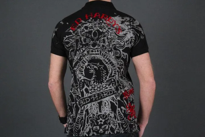 Polo piqué from Ed Hardy with cool Easy Black print. 100% cotton. Men's, black, small.