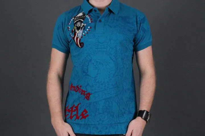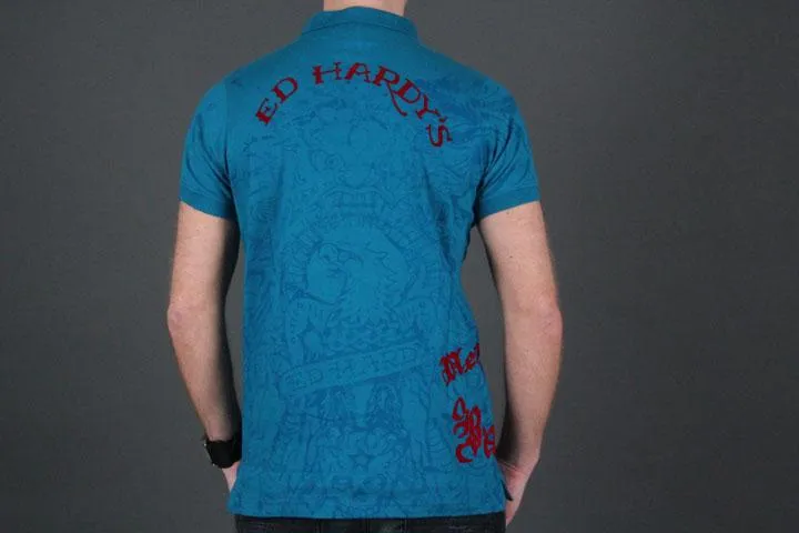 Polo piqué from Ed Hardy with cool Easgle Blue print. 100% cotton. Men, blue, Medium.
