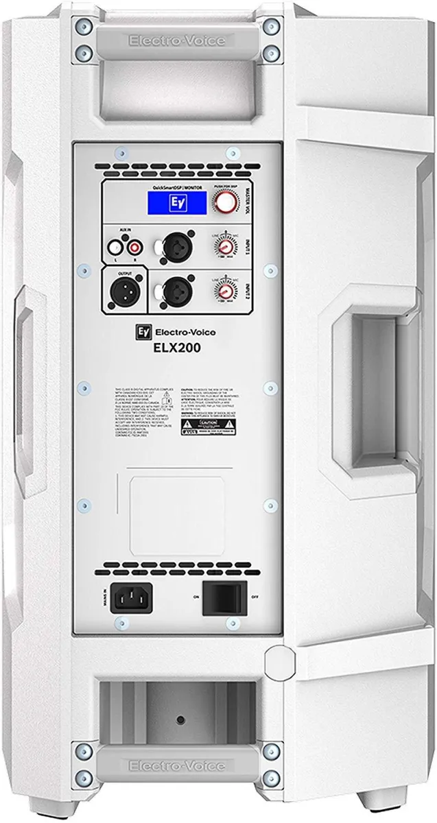 ELX200-12P features high-efficiency Class-D power amplifiers (up to 1200 W) with integrated QuickSmartDSP, and delivers up to 130 dB SPL utilizing transducers designed and engineered by EV (12-inch EVS-12M woofer coupled with a DH-1C 1-inch titanium compression driver). Powered full-range models allow easy setup via four presets (Music, Live, Speech, Club), sub/top system-match crossovers,