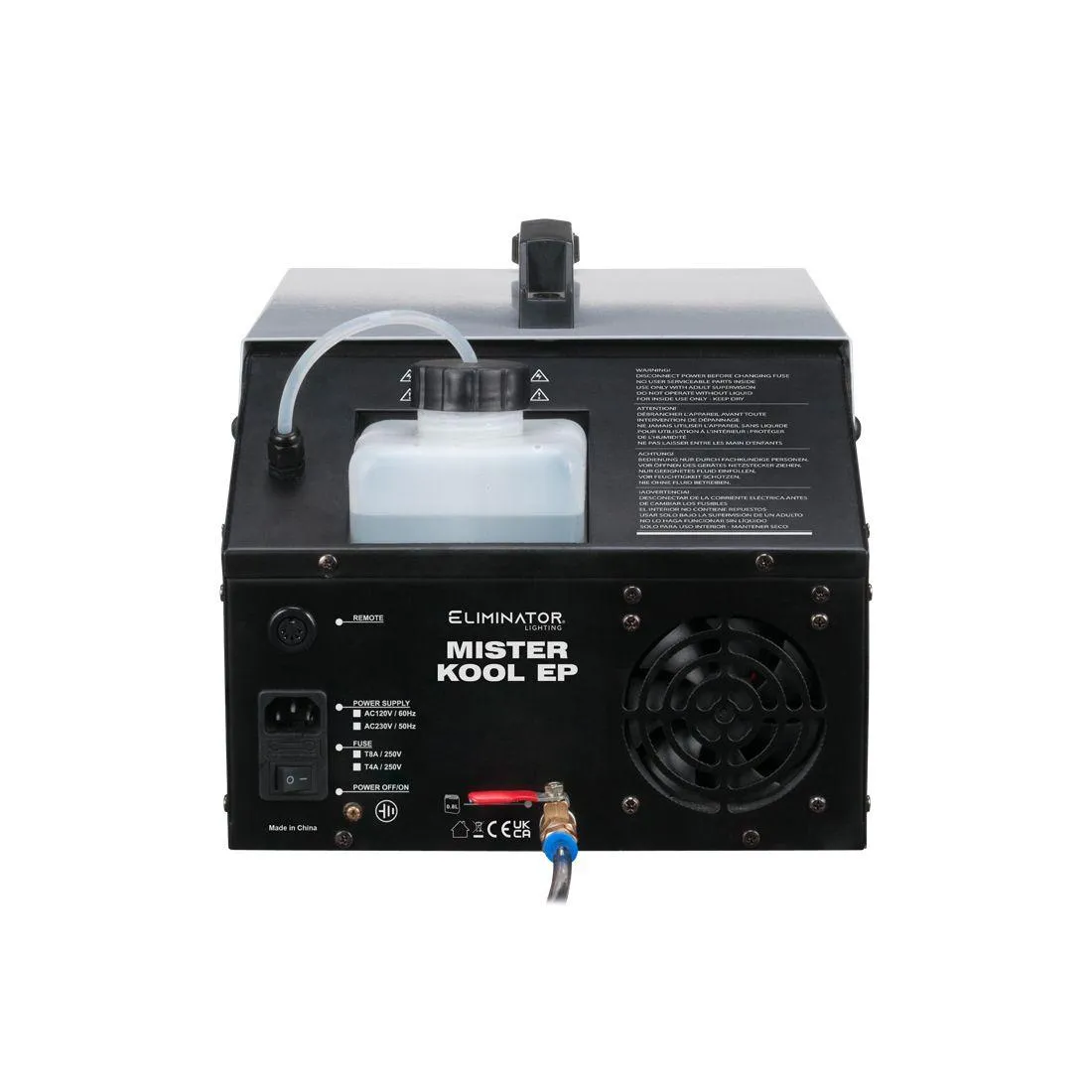 • Uses standard water based fog juice and ice cubes