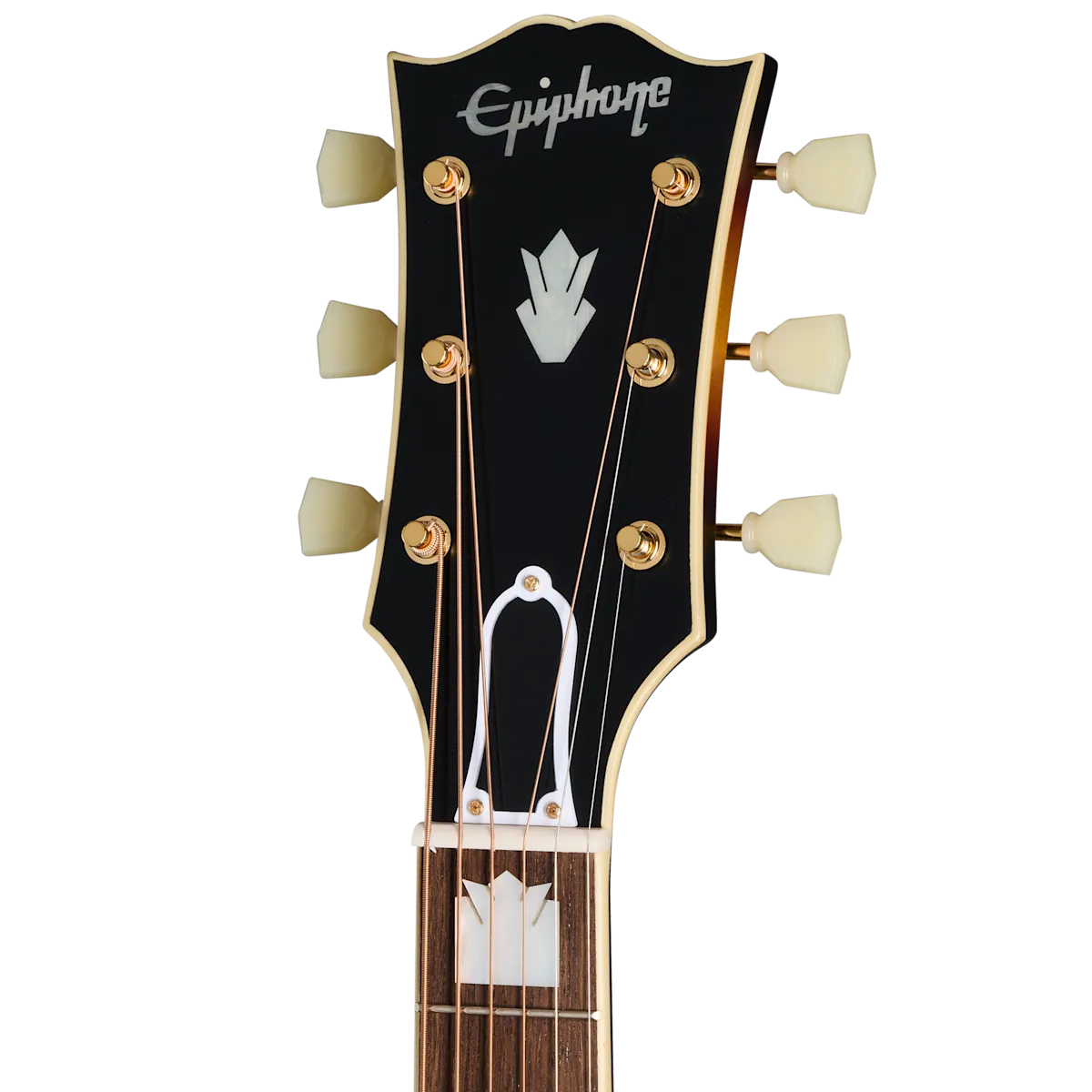 The world-famous SJ-200 is known as the “King of the Flat-Tops,” and It’s been the choice of countless legends, from singing cowboys to country, folk, and rock icons, right up to some of today’s most popular artists. Now Epiphone, in collaboration with Gibson™ Custom, is proud to release the 1957 SJ-200. This impressive guitar features a thermally aged solid Sitka spruce top supported by scalloped X-bracing, solid figured maple back and sides, and a flame maple neck with a C-profile, laurel fretboard, and graduated crown mother of pearl inlays. The headstock has the Gibson “open book” shape, along with a mother-of-pearl crown and Epiphone logo inlays, and the Inspired by Gibson Custom double diamond logo etched into the back. The iconic J-200™ open moustache bridge and engraved pickguard are also present, along with a compensated bone saddle, bone nut, and bone bridge pins. It even comes equipped with an L.R. Baggs™ Element Bronze VTC preamp and L.R. Baggs Bronze Piezo under saddle pickup, so it’s ready to rock on stage or in the studio as soon as you take it out of the included Inspired by Gibson Custom hardshell case.