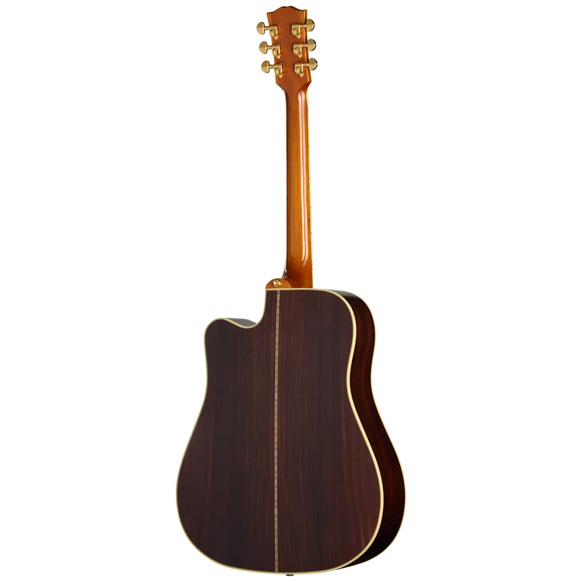Epiphone Inspired by Gibson presents the Hummingbird Deluxe EC Autumn Burst – a beautiful acoustic guitar in a new cutaway model. It features a square shoulder body design with solid rosewood sides and back, delivering a rich and nuanced sound with deeper bass and sparkling overtones. The top is made of thermally aged Sitka spruce, which gives a very resonant and mature tone. The guitar is equipped with an ebony fretboard, mother-of-pearl inlays, and premium details such as gold hardware and a Gibson-style headstock. It comes pre-fitted with an L.R. Baggs Element Bronze VTC pickup and preamp, ready for the stage or studio. With a lightweight, durable Protector Ultralite case, this guitar is both stylish and practical. Perfect for both lead players and acoustic enthusiasts.