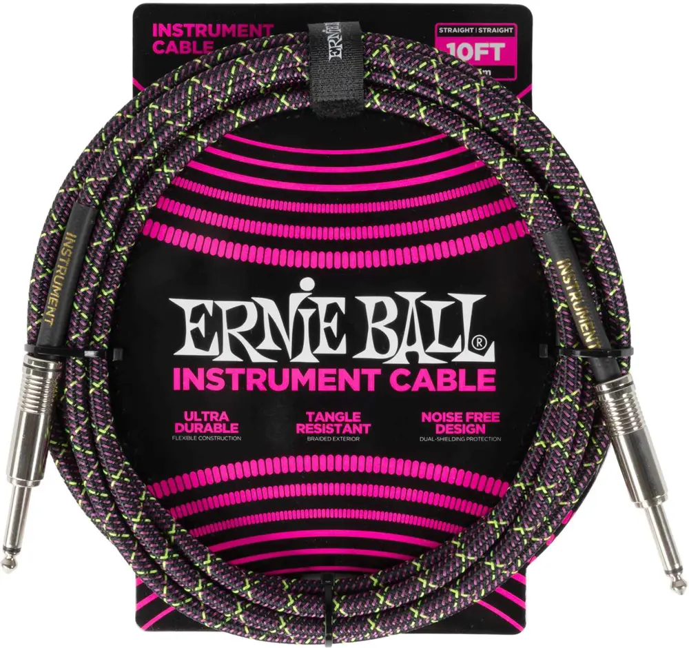 Ernie Ball instrument cables feature a high-quality design made with superior components that are built to last. Dual-conductors deliver reliably clear tone with crisp highs, tight mids, and rich harmonics. Multiple shielding materials preserve the signal with low handling noise, and the braided jacket exterior provides a tangle-resistant experience.