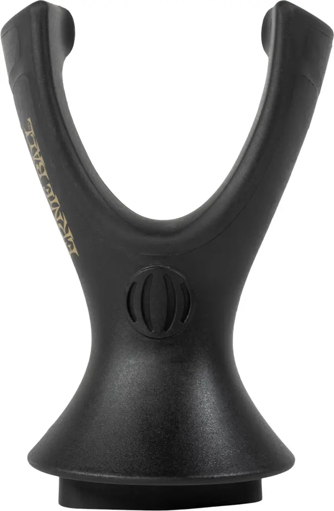 Non-slip, non-marring materials grip the neck just below the headstock.