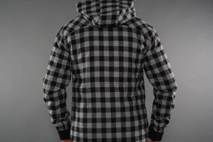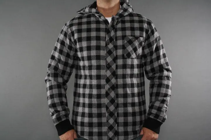 Grey and black checked lined jacket with hood and zip. Outer fabric: 65% cotton/35% polyester, lining: 100% polyester. Men, black/grey, large.