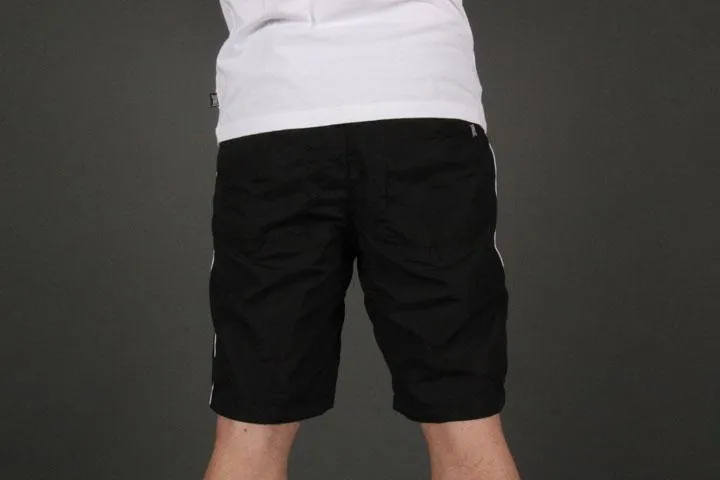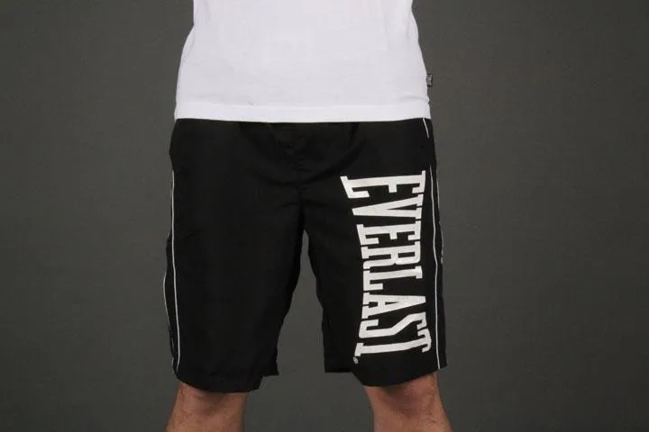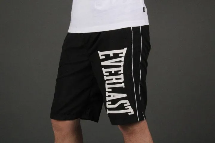 Black shorts with large Everlast logo in white along one leg. 100% polyester. Men, black, large.