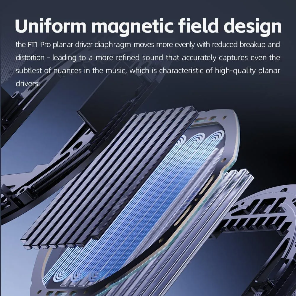 With innovative technologies such as 28nm chip-level diaphragm manufacturing, uniform magnetic field design and sapphire aluminium coating, the FT1 Pro delivers a dynamic and immersive listening experience. The adaptable design ensures comfort during long sessions and makes it a versatile choice for high-fidelity sound on the go.