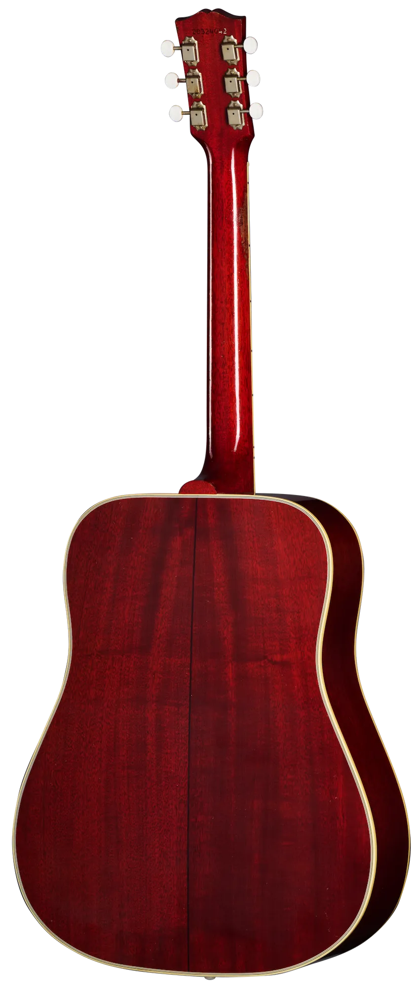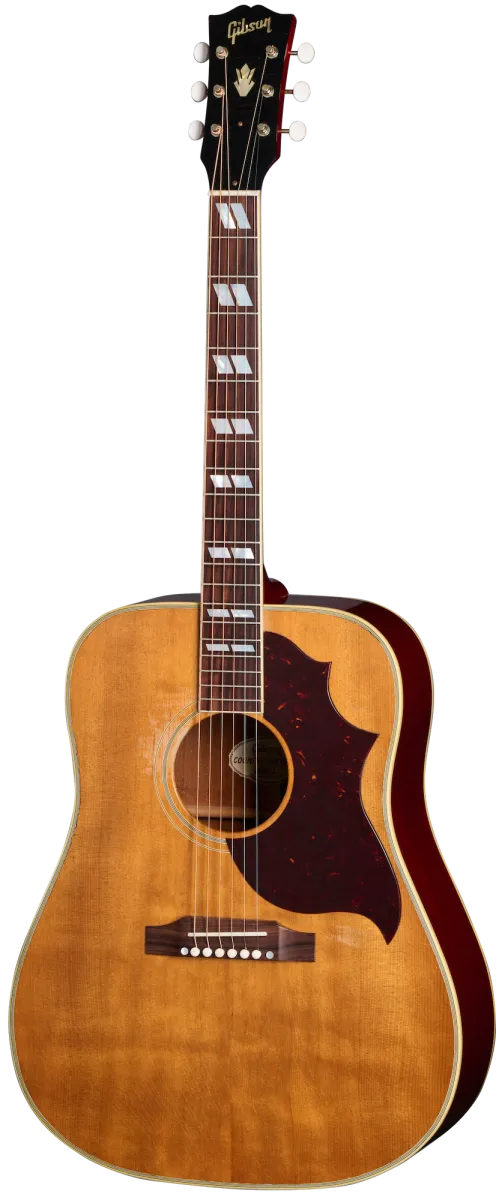 First introduced in a square shoulder configuration in 1962, the Country Western was created as a variation of Gibson's popular Southern Jumbo model. With the body shape of a Hummingbird™ but in a Natural finish and having an unadorned tortoise pickguard, the Country Western delivers wonderful tonal quality and a unique look that has been a resounding hit with players from the moment it was first released, all the way up to the present day; it has been one of our most requested acoustic models for reissue since the 1990s. This 1963 Country Western features a thermally aged Sitka spruce top, a mahogany back, sides, and neck, an Indian rosewood fretboard with 20 standard frets and mother-of-pearl parallelogram inlays, a bone bridge, nut, and bridge pins, the classicCountry Western tortoise pickguard, and nickel Gotoh® tuners with white buttons. It's been Heavy Aged by the artisans of the Murphy Lab to give it the look and feel of a well-loved, longtime musical companion.