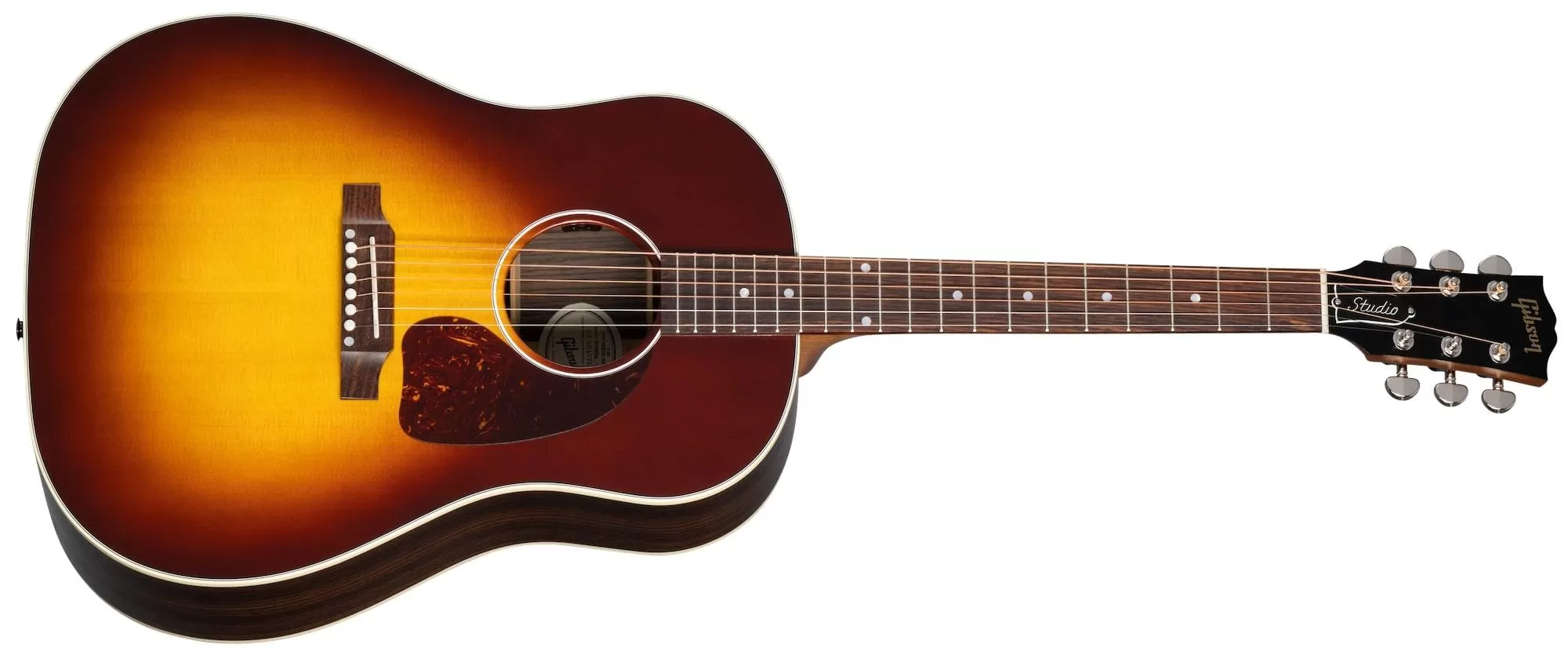Turn heads with the J-45 ™ Studio Rosewood. Hand-built using solid rosewood back and sides and a solid Sitka spruce top, this updated J-45 Studio features a traditional body depth for warm, rich tone. The Advanced Response profile utile neck ensures smooth, easy playability. Available in Satin Natural and Satin Rosewood Burst finishes, the J-45 Studio Rosewood has an L.R. Baggs ™ Element Bronze active under-saddle piezo pickup for studio-quality plug-and-play anywhere. Packaged in an included hardshell case for portability, this J-45 Studio Rosewood is ready for the studio and the stage.
