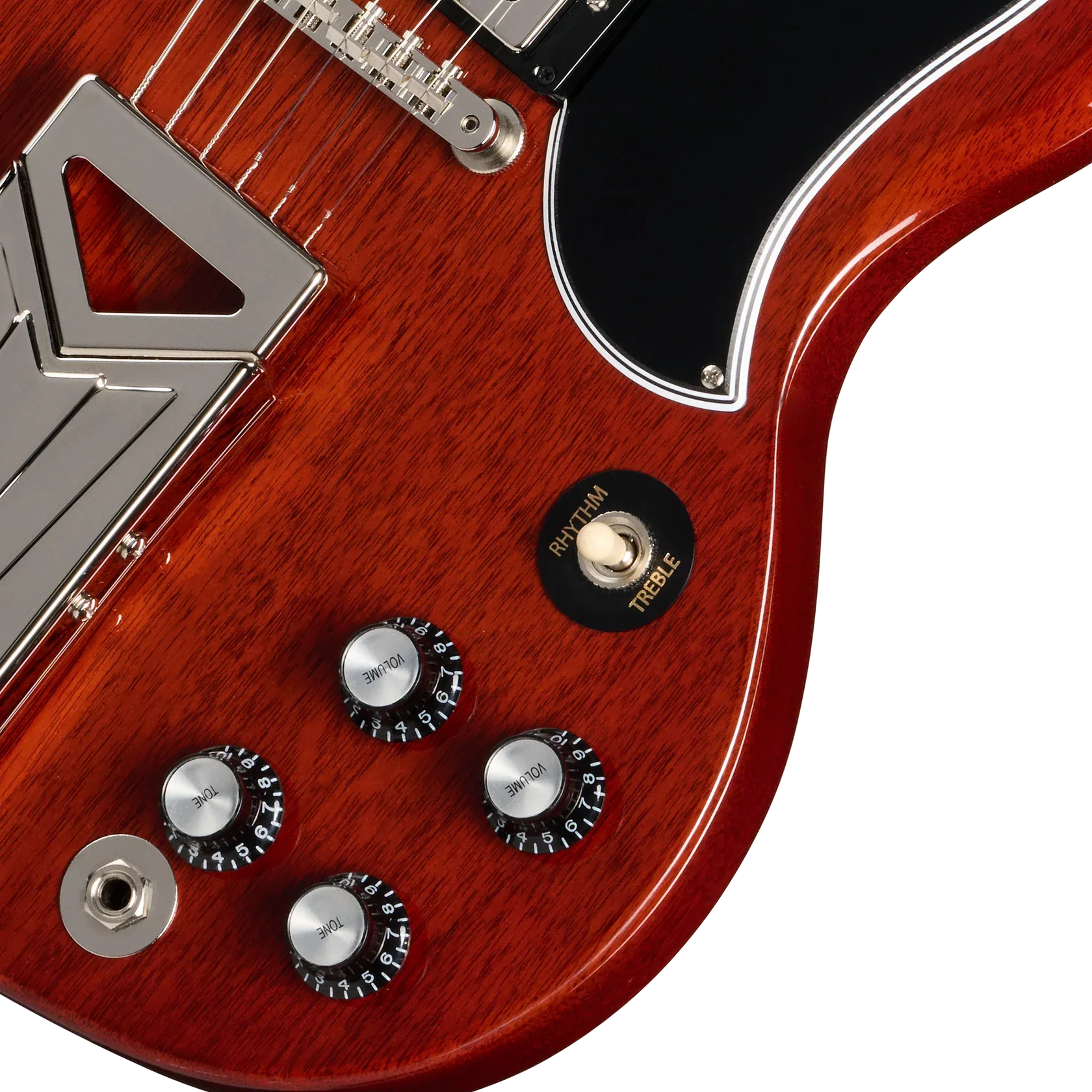 The Jake Kiszka SG Standard is a limited-edition model that pays homage to the classic 1961 SG design. With its iconic double cutaway shape and vintage-inspired aesthetics, it combines tradition with modern playability and reliability.