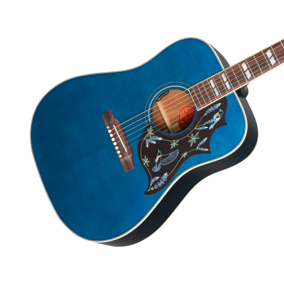 Named as one of the most influential people in the world by TIME, Miranda Lambert is among the brightest stars in modern country music. An acclaimed singer and songwriter, she has won multiple GRAMMY® and Country Music Association Awards and has been honored with more Academy of Country Music Awards than any artist in history. A constant champion of other female artists - including numerous collaborations and her work as a member of the Pistol Annies she's made it a priority to encourage more girls and women to pick up guitars themselves. Her music and mission have been honored with a new Gibson signature model guitar: the Miranda Lambert Bluebird is as distinctive as its namesake. A variation on the iconic Hummingbird ™, it features a square shoulder mahogany body with a Sitka spruce top, a vivid Bluebonnet nitrocellulose lacquer finish celebrating the official flower of her home state of Texas, and a custom Bluebird pickguard inspired by her chart-topping song of the same name. The L.R. Baggs ™ TC electronics make this exceptional guitar stage and studio ready from the moment you take it out of the included hardshell case.