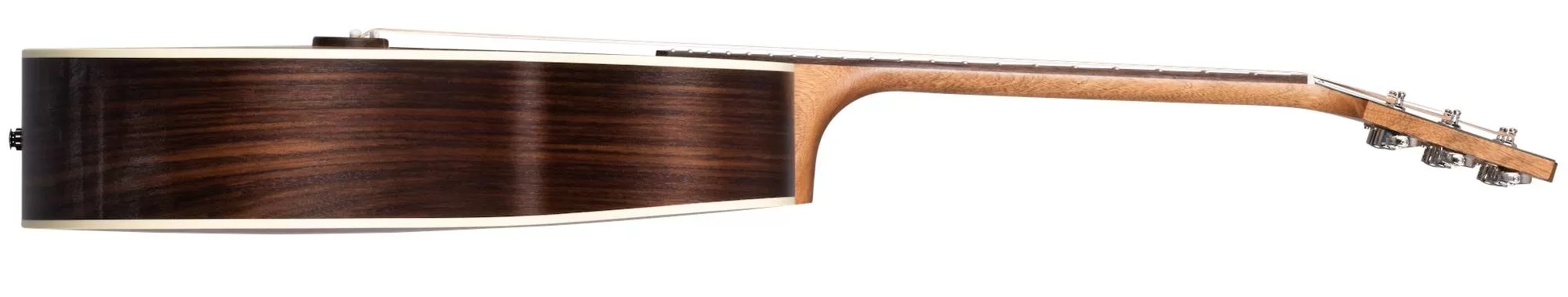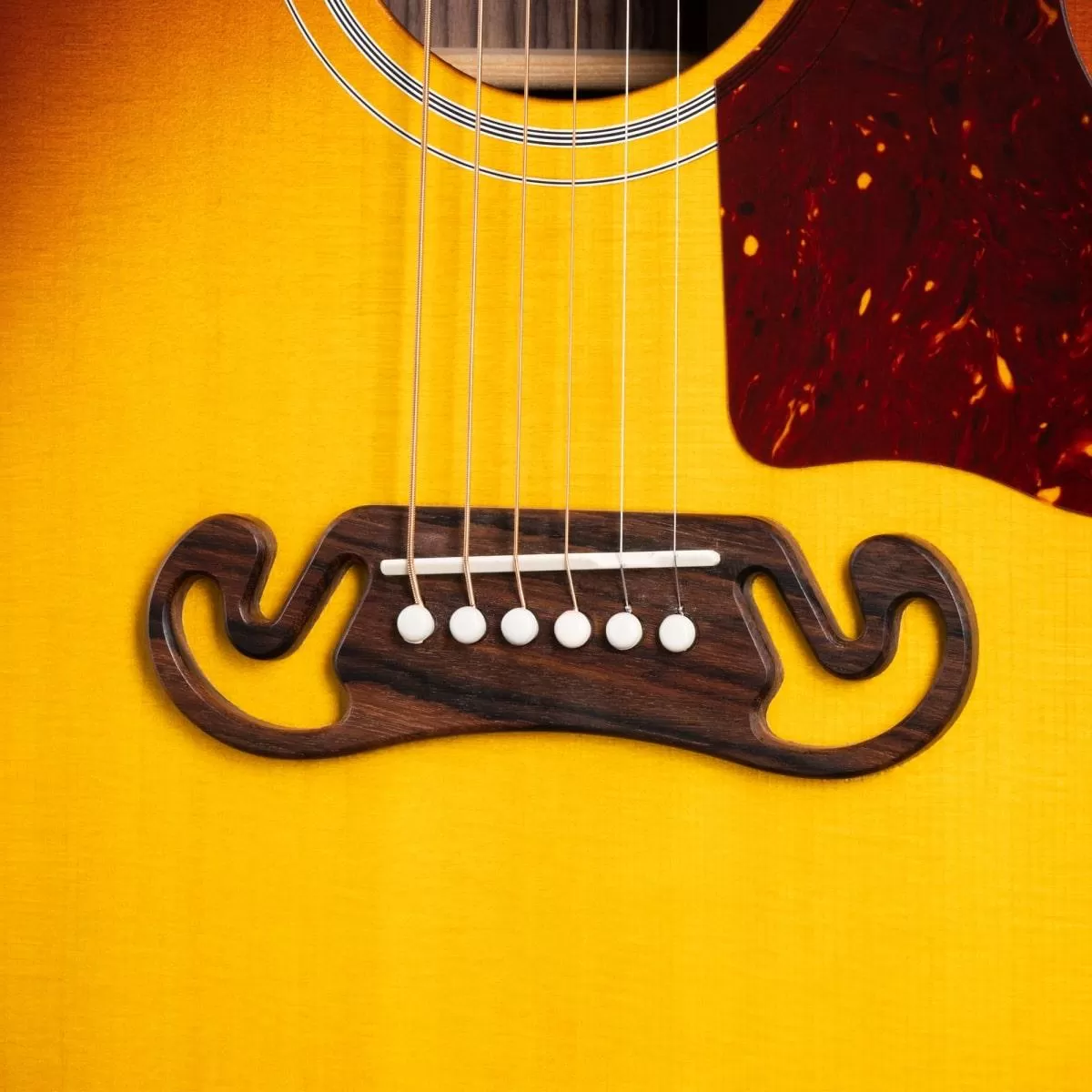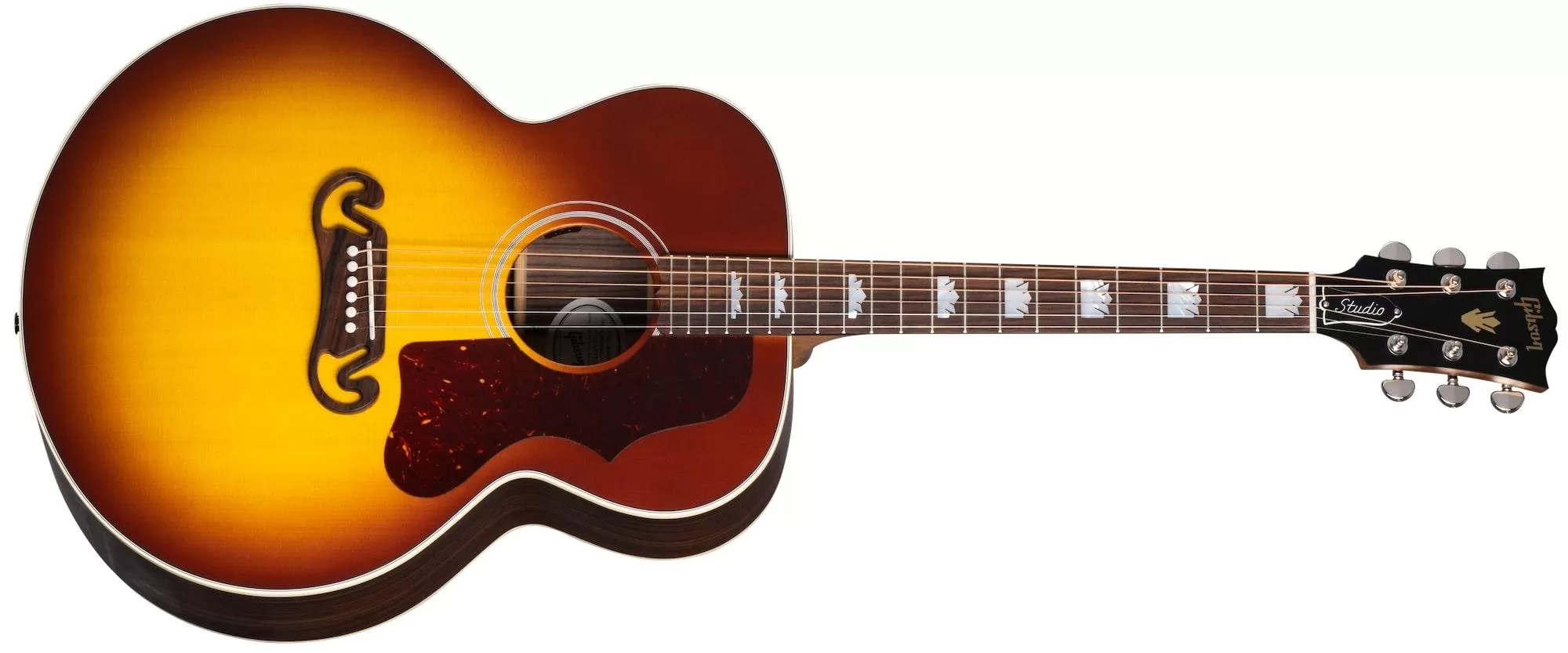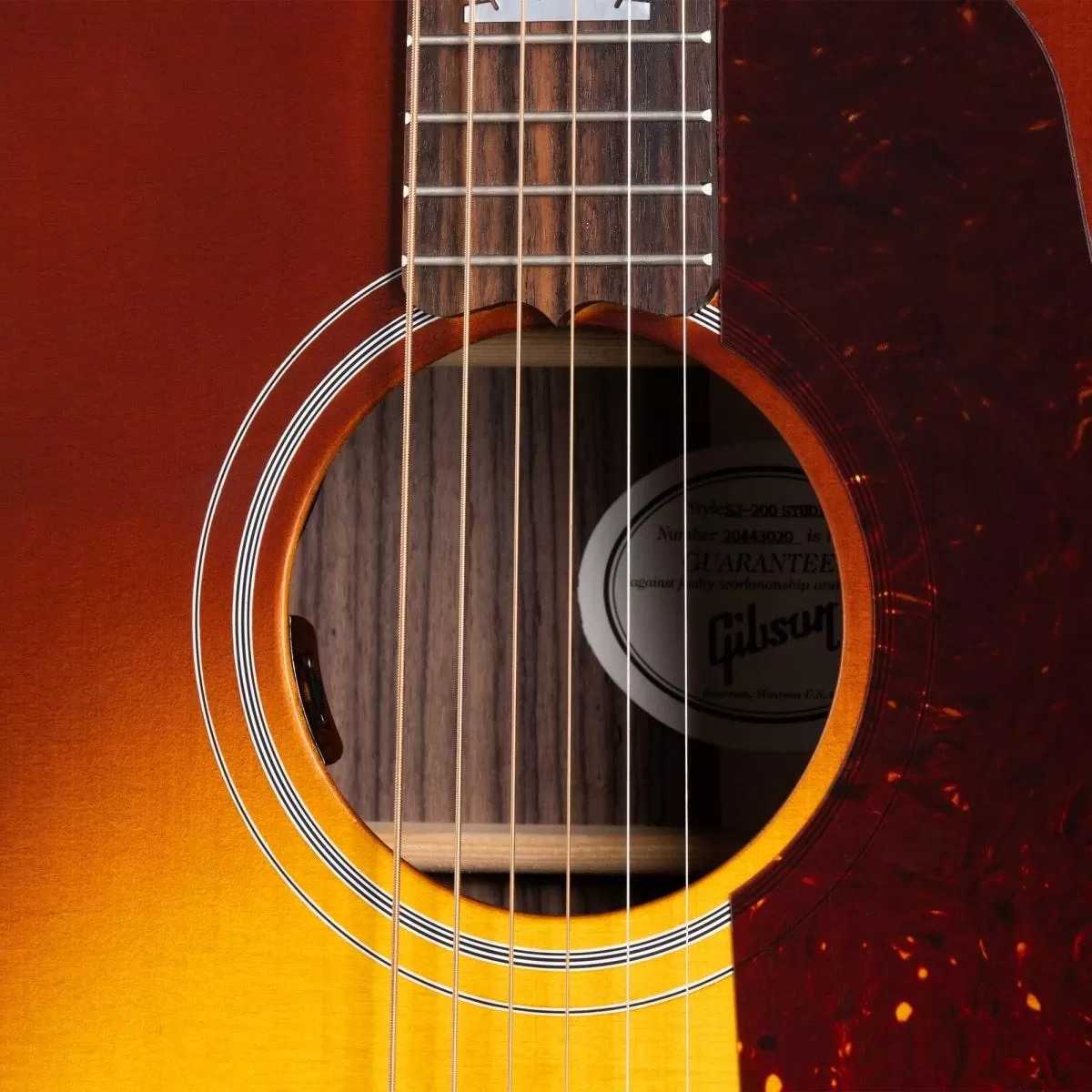 Hand-built using Sitka spruce and rosewood, this SJ-200 Studio Rosewood will surely please the eyes and ears. A satin nitrocellulose lacquer finish gives it the look and feel of a long-treasured musical companion. Updated with a traditional full body depth for deep, resonant tone, the SJ-200 Studio Rosewood also has an Advanced Response profile utile neck for playing comfort. An L.R. Baggs™ Element Bronze active under-saddle piezo pickup and hardshell case make this guitar ready for the studio and the road.