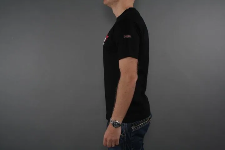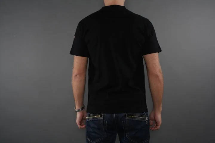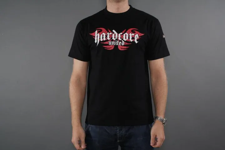Short sleeve t-shirt with print on the chest. Small Hardcore badge on one sleeve. 100% cotton. Men, black, 3XL.