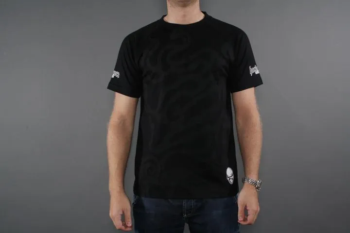 T-shirt with print on chest and sleeves. 100 cotton. Men's, black, 3XL.