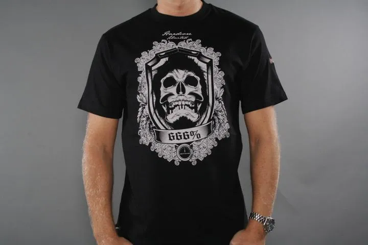 Black t-shirt with trendy news school tattoo print. 100% cotton. Men, black, 3XL.
