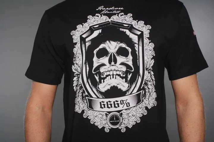 Black t-shirt with trendy news school tattoo print. 100% cotton. Men, black, XL.