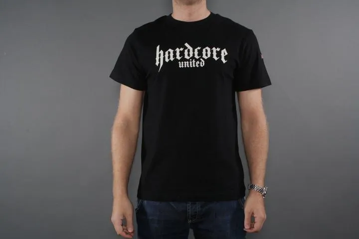 Short sleeve t-shirt with Hardcore United logo on the chest. 100% cotton. Men, black, small.