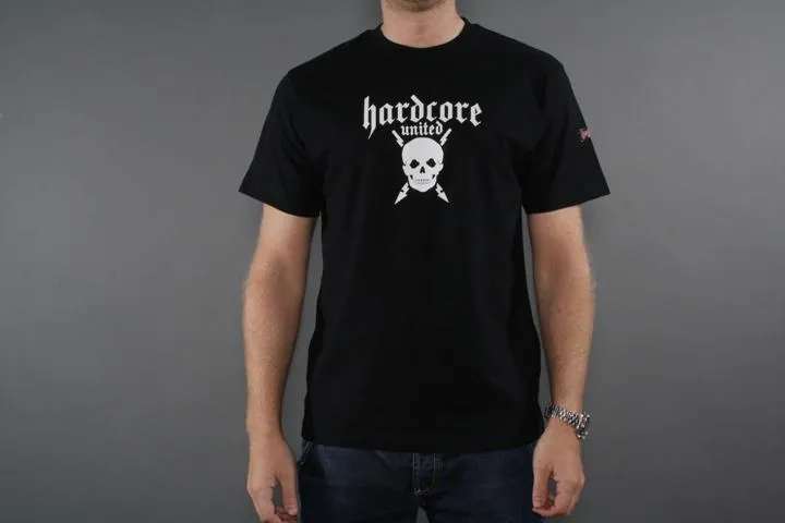 Short sleeve t-shirt with Hardcore United logo + skull on the chest. 100% cotton. Men, black, large.