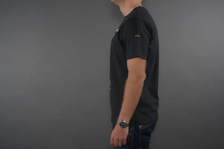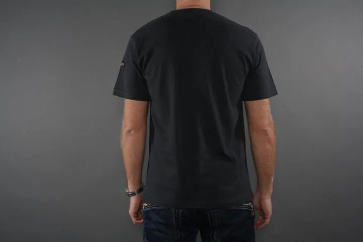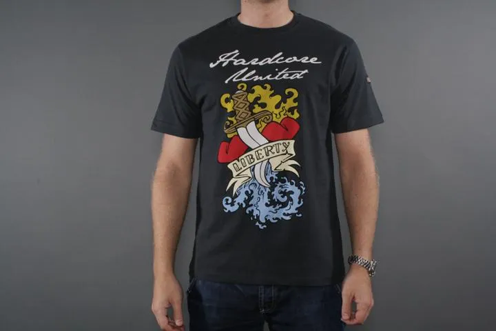 T-Shirt with tattoo print on the chest and small Hardcore brand on one sleeve. Men, gray, Large.