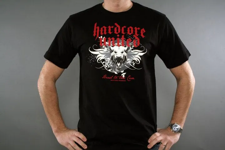 Short sleeve t-shirt in black with cool print on the chest. 100% cotton. Men's, black, medium.