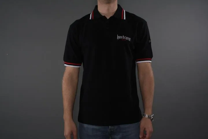 Short-sleeved polo shirt with Hardcore embroidery on the left side of the chest. 100% cotton. Men's, black, XL.