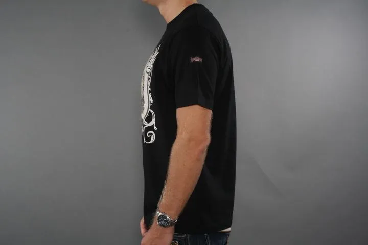 Black t-shirt with print on the chest. Hardcore United badge on the side. 100% cotton. Men, black, XL.