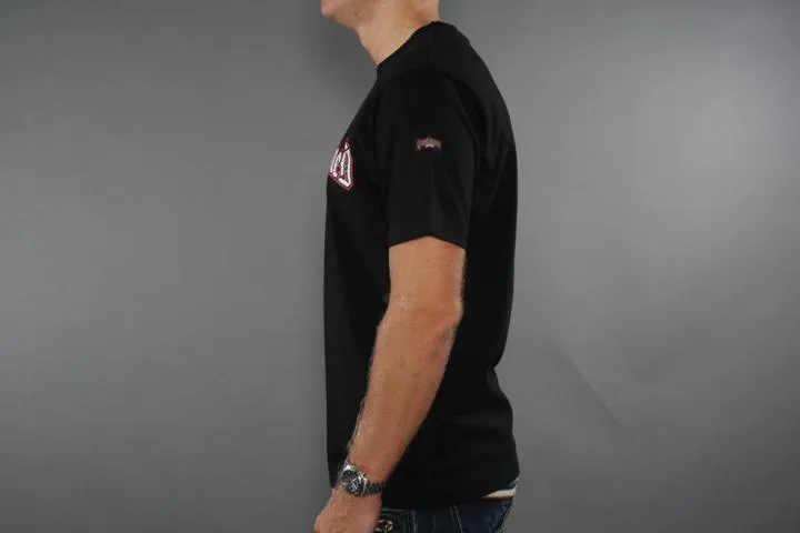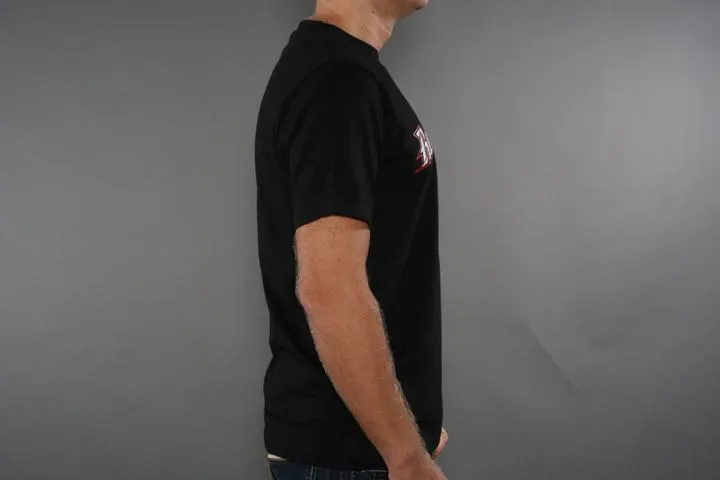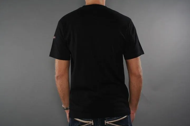 Black t-shirt with print on the chest. 100% cotton. Men, black, small.