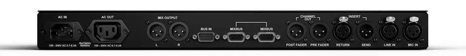 Hybrid Workflow Features: Integrated stereo mix bus for cascading multiple units with 0 dB fader bypass for unity gain recording.