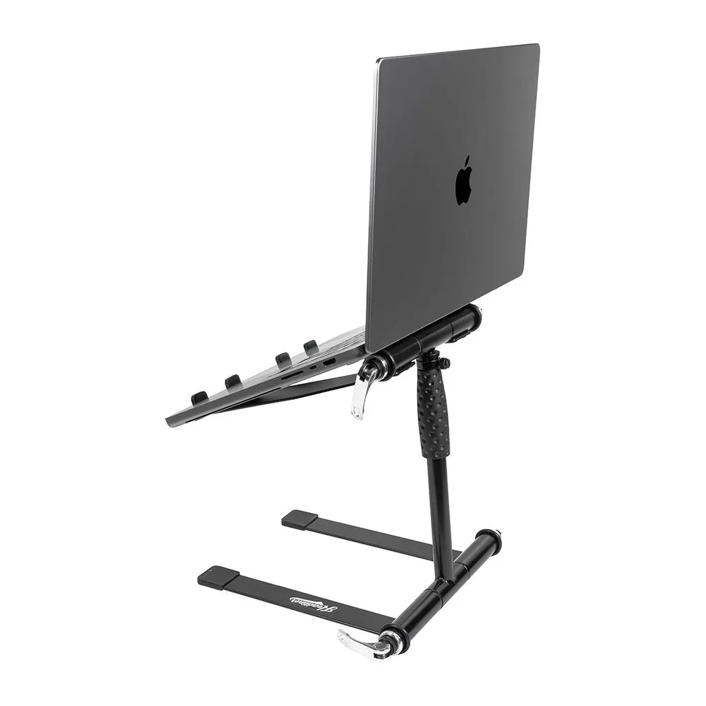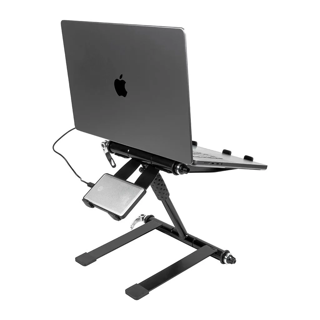 Fully-adjustable laptop stand for DJ’s and musicians with 360 degrees telescoping neck
